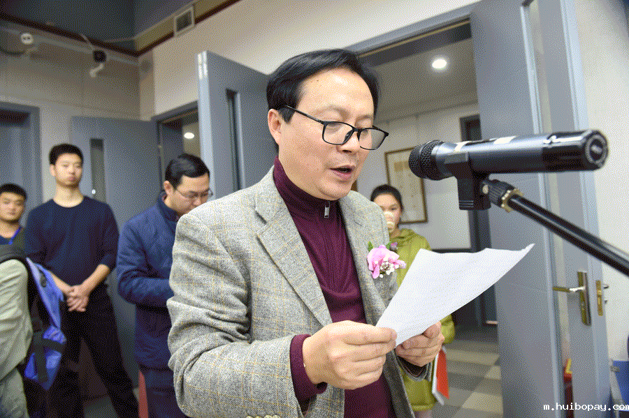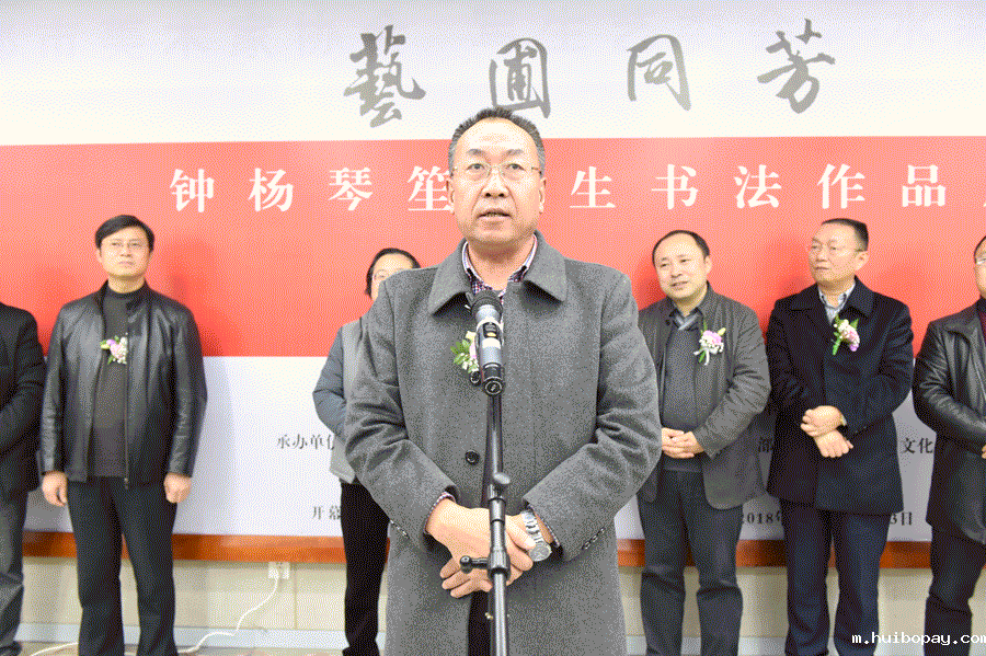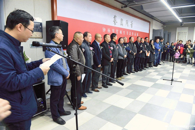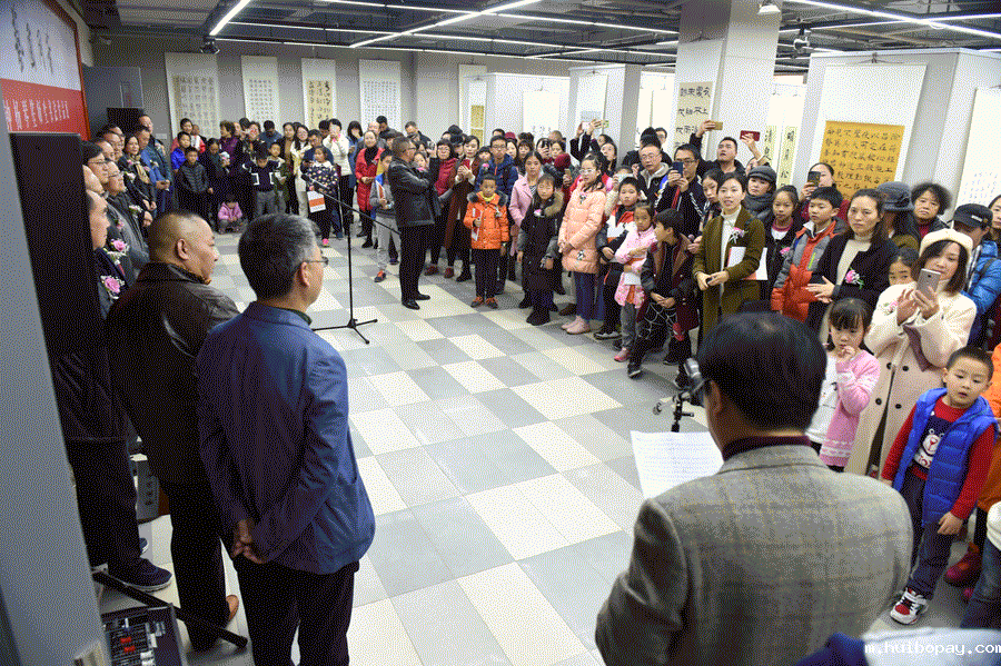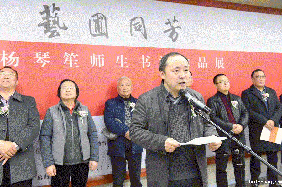 开幕式上,钟杨琴笙老师向大家介绍了展览情况。他首先感谢各位领导和来宾牺牲周末休息的时间来参观展览,一起见证学员们在书法艺术学习过程中取得的一点小成绩。他介绍说,参展的50多名书法爱好者少长咸集,既有青少年宫的蒙童稚子,也有各行业风华正茂的青年才俊,还有退居二线的老大哥、老大姐,正是对书法艺术的热爱使大家走到了一起。