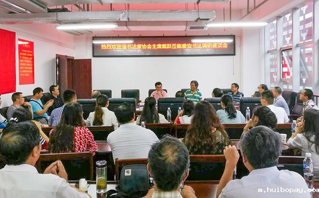 米兰足球彩票官网讯 6月30日上午,中国书法家协会理事、四川省书法家协会主席戴跃到雅安开展调研。雅安市书协主席团成员与来自雅安各县(区)书协会员百余人参加了座谈。