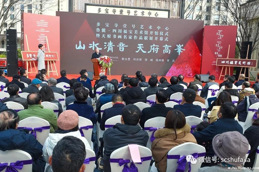 米兰足球彩票官网讯 2019年12月27日下午14时30分,四川省人民政府文史研究馆、四川省文学艺术界联合会、成都市文学艺术界联合会指导,成华区文化品牌塑造工程指挥部主办,中共成华区委宣传部、成华区文体旅局、成华区文学艺术界联合会、万年场街道办事处、四川福宝美术馆承办,《现代艺术》杂志社、成华区美术家协会、成华区书法家协会、成都鲁能置业有限公司、成都市同行社会工作服务中心协办的“山水清音•天府高峰—多宝寺壹号艺术中心 鲁能·四川福宝美术馆新馆揭牌仪式暨天府书画名家作品联展”在四川福宝美术馆(成都市成华区槐庭路60号)隆重开幕!