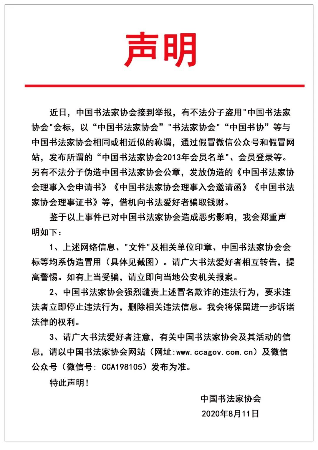 鉴于以上事件已对中国书法家协会造成恶劣影响,我会郑重声明如下