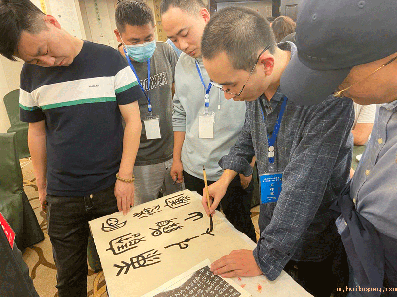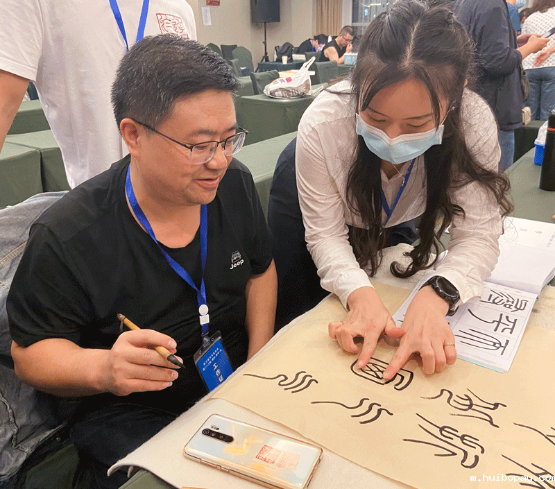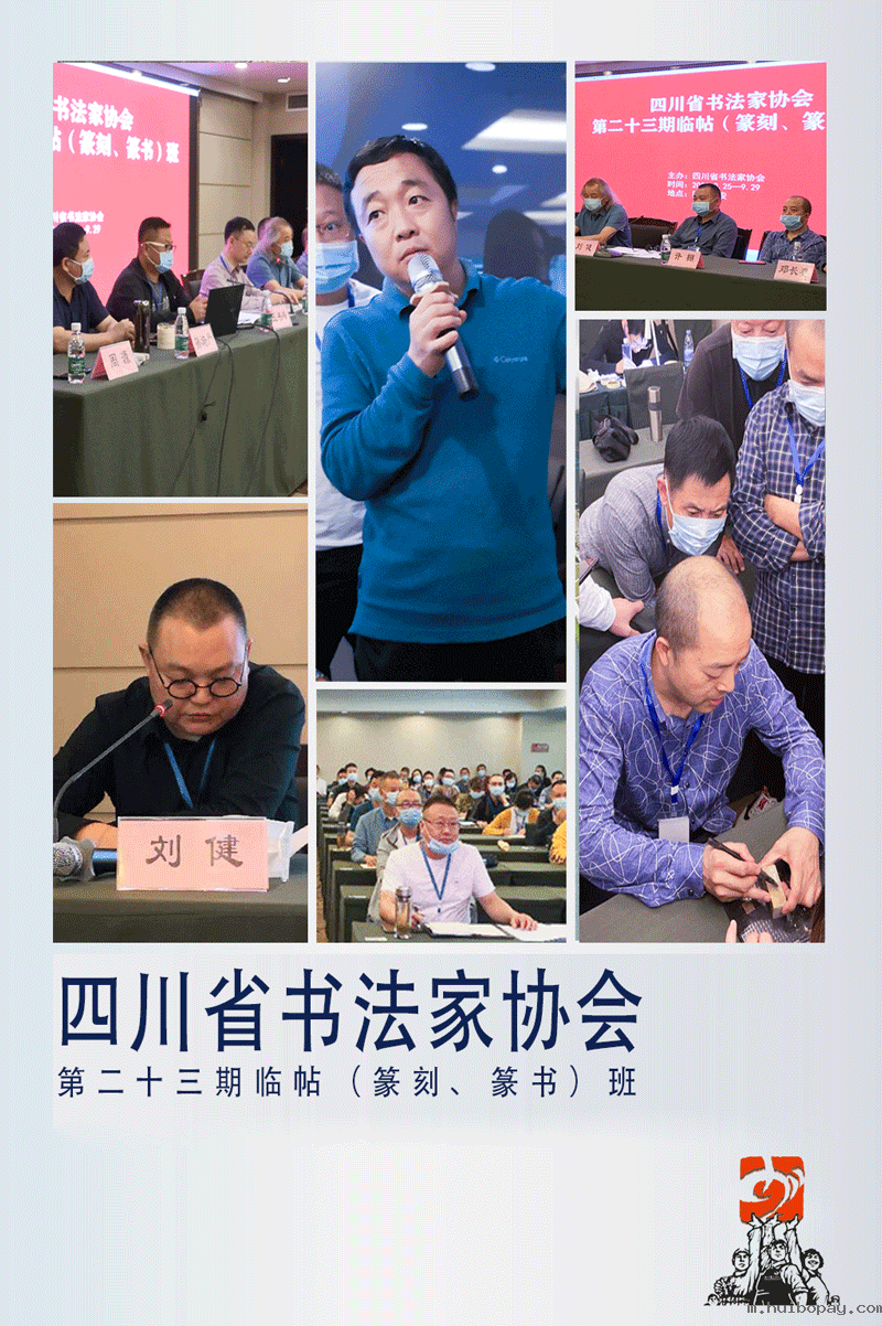 晚上,在获奖作者经验交流会上,周源的《工稳印风的学习和创作》、龚吉民的《战国小玺印风的学习和创作》、李佩峰的《古玺印创作浅谈》均现身说法,深入浅出,层层剖析,生动鲜活。辅导教师许棚、孙培严、邓长春、周源分组对全体学员进行了悉心指导并作了临摹示范。刘健对全天教学活动进行了小结。(四川省书法家协会)