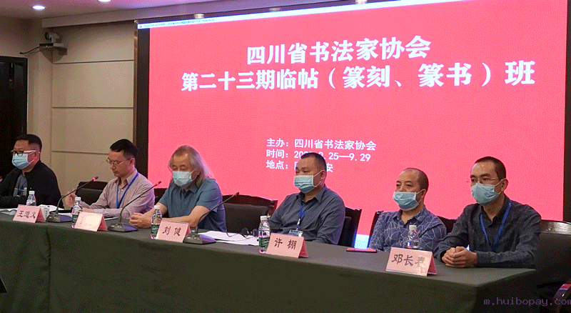 9月26日上午9:00,四川省书法家协会第二十三期临帖(篆刻、篆书)班在蓬安县相如饭店举行开班仪式。郭强、刘永清、王道义、刘健、唐昊、王书峰、许棚、孙培严、邓长春、周源、吴艾伦等及全体学员参加了开班仪式。