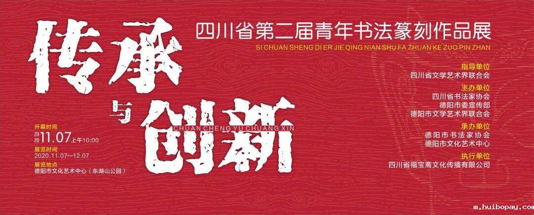 展讯预告:由四川省文学艺术界联合会指导,四川省书法家协会、德阳市委宣传部、德阳市文学艺术界联合会主办,德阳市书法家协会、德阳市文化艺术中心承办的“传承与创新·四川省第二届青年书法篆刻作品展”将于11月7日上午11点在德阳市文化艺术中心(东湖山公园)举行隆重开幕仪式。