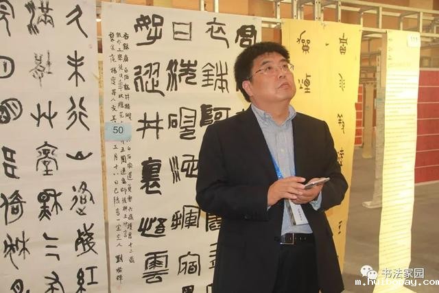 李啸老师在书法展评审中(书法家园 资料图片)