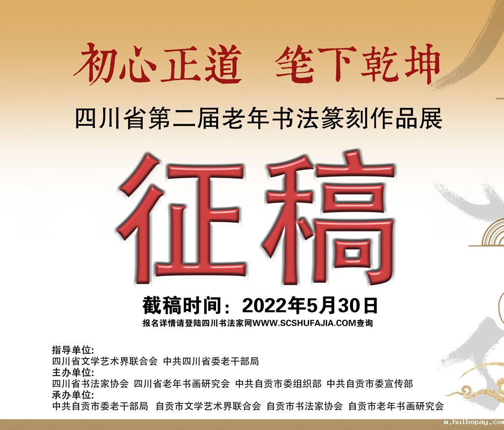 为迎接中国共产党第二十次全国代表大会的胜利召开,深情描绘新时代新征程的恢宏气象,书写生生不息的人民史诗,热情讴歌党领导全国人民坚持中国特色社会主义道路自信、理论自信、制度自信、文化自信和全面建成小康社会的伟大壮举,发扬向上向善的优良传统,坚持不忘初心、弘扬正道、守正创新,用思想深刻、清新质朴、刚健有力的优秀作品充盈人民精神生活、开拓文艺新境界,集中展示我省老年书法作者的创作成果,向2022年中国共产党第二十次全国代表大会献礼,四川省书法家协会、四川省老年书画研究会在四川省文学艺术界联合会、中共四川省委老干部局和中共自贡市委组织部、中共自贡市委宣传部的指导支持下,决定共同主办“初心正道 笔下乾坤——四川省第二届老年书法篆刻作品展”。