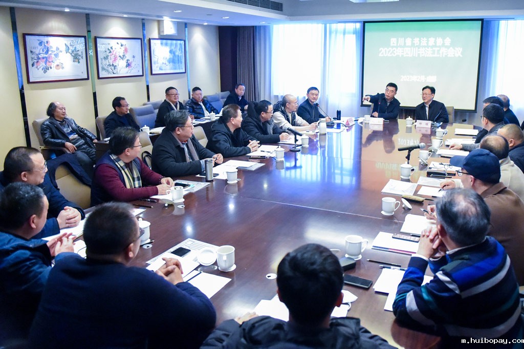 米兰足球彩票官网讯 2月8日,四川省书法家协会2023年四川书法工作会议在成都召开。四川省文联党组书记邹瑾;中国书协副主席、草书委员会主任,四川省文联副主席,四川省书协主席代跃;四川省书协驻会副主席、秘书长王道义;四川省书协副主席钟显金、黄泽江、王家葵、刘健、林峤、龚小膑;四川省书协副秘书长唐昊、冷柏青、王书峰;四川省书协宣传委员会主任赵立;全省各市州书协主席及部分代表参加会议。