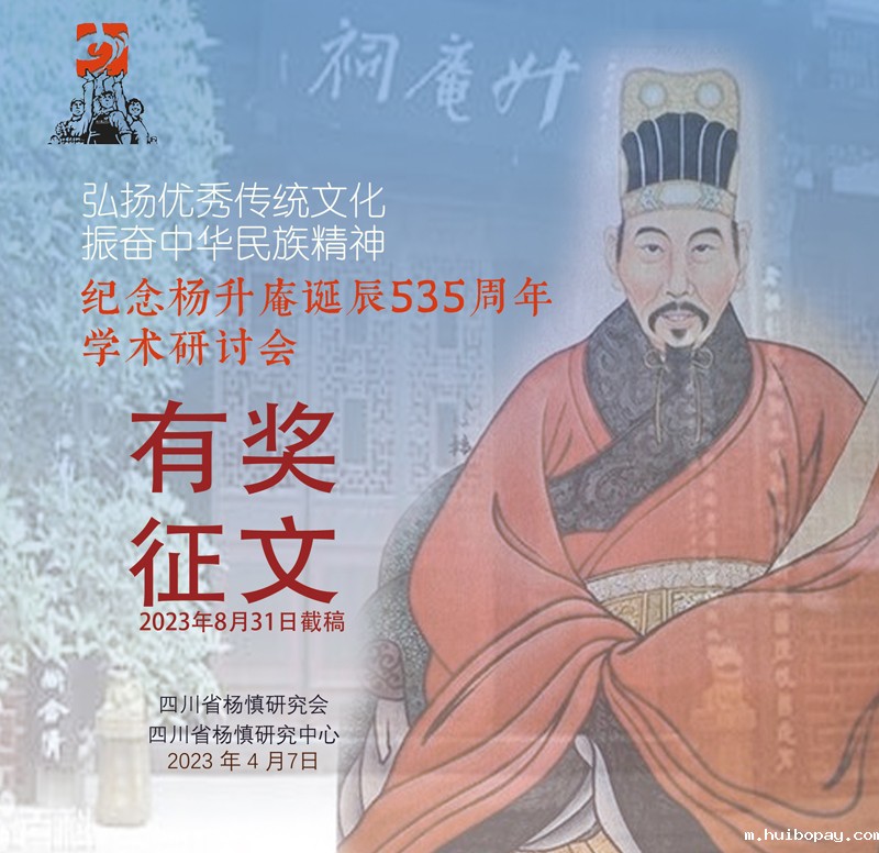 2023年,时值杨慎(升庵)诞辰535周年。为弘扬中华优秀传统文化,全面发扬杨慎治学精神,传承灿烂的巴蜀文化,深入贯彻落实四川省历史名人文化工程战略部署,全面提升文化核心竞争力,成都市新都区人民政府、四川省杨慎研究会、四川省杨慎研究中心根据中共中央办公厅、国务院办公厅《关于实施中华优秀传统文化传承发展工程的意见》之相关精神,拟于年内举办纪念杨升庵诞辰535周年学术研讨会,特确定以杨慎著述与文献整理研究、杨慎经学与经学思想研究、杨慎文学与文学思想研究、杨慎史学与史学思想研究、杨慎古文字与音韵学研究、杨慎书法与书学思想研究、杨慎流寓地与学术活动研究、杨慎历史贡献与影响研究、杨慎其他相关研究为主题,征集高水平学术论著。研究成果可以是调研报告、研究论文、学术专著等原创作品。诚邀海内外学人概予支持,踊跃参与,共襄盛举。