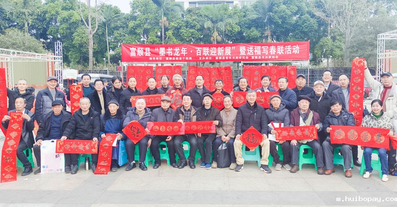 富顺县是一个拥有千年古县和才子之乡美誉的历史文化古县,历来崇文尚义,文化兴盛,文化艺术活动丰富多彩,层出不穷。特别是新年春节期间的群众文化活动更是精彩纷呈。今年新年春节来临之际,富顺县老年书画研究会,富顺县书法家协会,在往年走乡村、进社区写春联的基础上,提升了活动的广度和深度,扩大了文化惠民的成效。主办单位广泛发动书法家创作春联书法作品,并评选出100幅春联作品参展。春联作品内容充分紧扣了时代主题,彰显了中华传统文化和群众喜闻乐见的民俗文化特色。展览春联采用统一规格,统一尺寸,统一熨烫,统一布展。规模宏大,氛围浓烈。