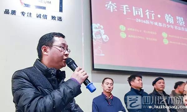 成都市青少年宫书法部副部长王骥在开幕式上致辞