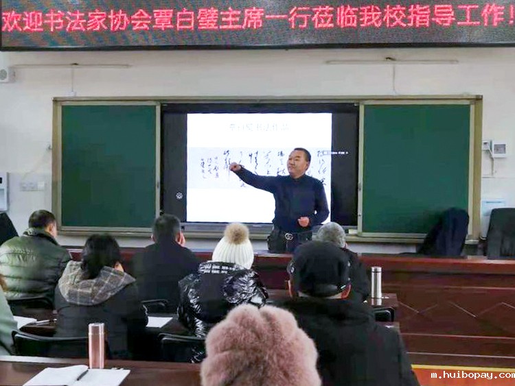 12月17日,深冬时节,寒雨初歇,射洪市10余名书法家在市书协主席覃白璧的带领下来到金家镇中。艺术家们走进课堂,对学校书法兴趣班的孩子们作了精彩点拨和指导,覃白璧主席还为学校老师上了一堂别开生面的书法鉴赏课,气氛热烈,洋溢着春天的气息。