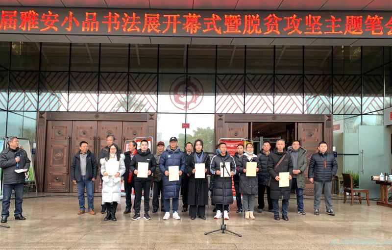 为深入学习贯彻习近平新时代中国特色社会主义思想和党的十九大精神,切实按照习近平总书记对文艺工作提出的新要求,进一步传承弘扬中华民族优秀传统文化,努力倡导"植根传统、鼓励创新、艺文兼备、多样包容"的创作理念,以实际行动助力脱贫攻坚,在雅安市文学艺术界联合会的指导下,2020年12月19日,雅安市书法家协会、雅安市博物馆、雅安市文化馆在雅安市博物馆共同举办了首届雅安小品书法展。