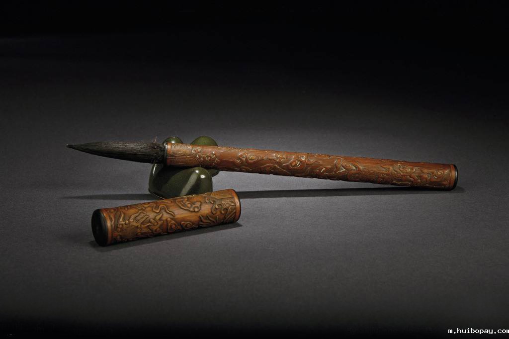 此外,用动物毛制做成的笔,还有鹿毫、麝毫、虎毫、以及鸭毛、鹅毛等,这些笔由于选料极精,造价较贵。其中有些笔管系用象牙、青玉、犀角、紫檀、琉璃等珍贵材料制成、配以非常考究的装璜和精美的字画雕绘,这些稀有之属,已不切合实用,而只能作为工艺品以供陈列欣赏了。