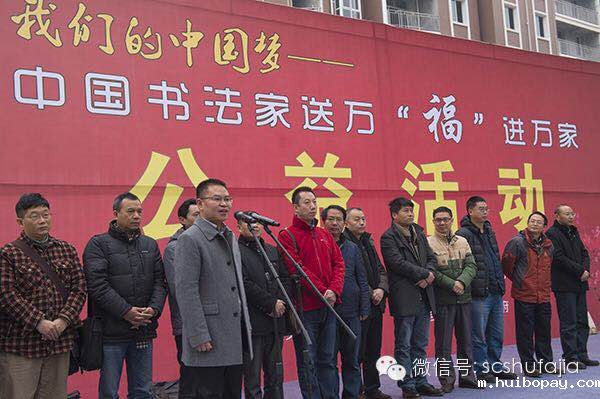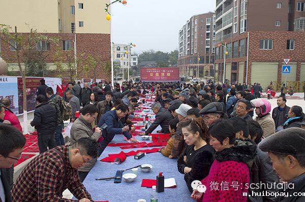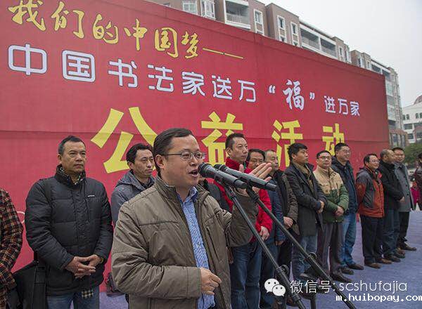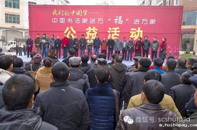 米兰足球彩票官网讯     1月24日上午,由四川省书法家协会、华西都市报、遂宁市文联、大英县委宣传部联合主办的“我们的中国梦――中国书法家送万‘福’进万家”公益活动在遂宁大英县河边镇开展。此次活动是省书协、华西都市报为贯彻落实习近平总书记在文艺工作座谈会的讲话精神,扎实开展“深入生活、扎根人民”主题实践活动、更好的服务基层,服务社会而举办的又一次实实在在的文化惠民活动。四川省文联党组副书记邓涛,中国书协理事、四川省书协常务副主席兼秘书长戴跃,华西都市报常务副总编赵晓梦,四川省书协副主席刘新德、舒炯、何开鑫、林峤,四川省文联组联处副处长吴彬以及中书协会员冷柏青、王道义、汤文俊、周于明、杨进、刘宁宇、齐建霞、杨燕刚、刘舒、钟宣秋等20余位中国书协、省书协会员参加了此次送“福”、送春联活动。