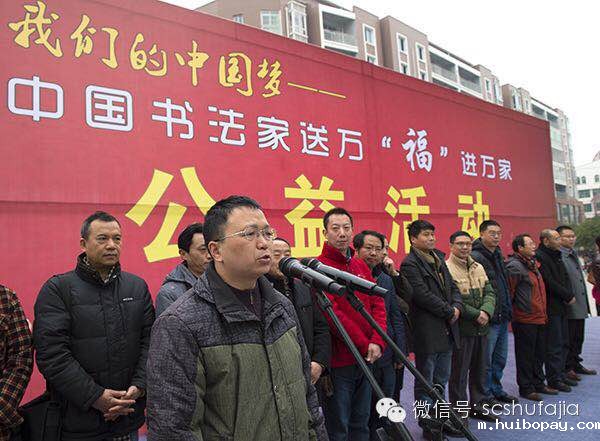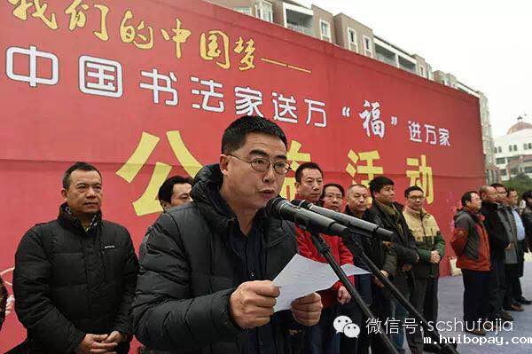 四川省文联党组副书记邓涛宣布“我们的中国梦-中国书法家送万‘福’进万家”走进大英活动开始。