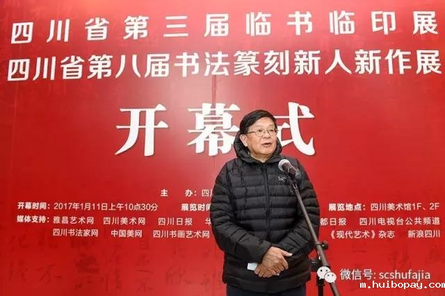 何应辉主席在开幕式上致辞时对本次展览的成功举办和高质量展示效果给予了高度评价。他说,四川省书法家协会主办的这两个省级专业性书法展示活动,有三个方面的突出特点:一是作品的质和量有了全面提高。两个展览的总投稿量和水平线以上作品的数量、质量都超过历届,反映了近年来我省书法创作与事业发展后继有人、长江后浪推前浪的可喜局面;二是学书路子正根基好。展览作品以尊重原碑帖为主,从不同的角度解读了经典,较好地体现了作者的临帖功力和书写水平,是四川书法作者临帖实力的一次集中展示,体现了四川书法对经典碑帖深入学习和研究的成果。三是思想开放视角独特。新人新作展的作者在创作上具有借鉴视角,除了指向优秀传统之外,同时指向当代,而且在对当代时流的观照中,很多作者已有着比较清醒的分析与批判的自主立场,减少了盲目性,较好地做到了“今不同弊”。他鼓励获奖、入展作者要在临与创、古与今的交会中,多向经典学习,更好地发扬光大优秀传统,同时在艺术的观念与实践两个方面,都得到淬炼,促成艺术水平更大的提高,积极为四川书法艺术的进一步繁荣发展做出努力。
