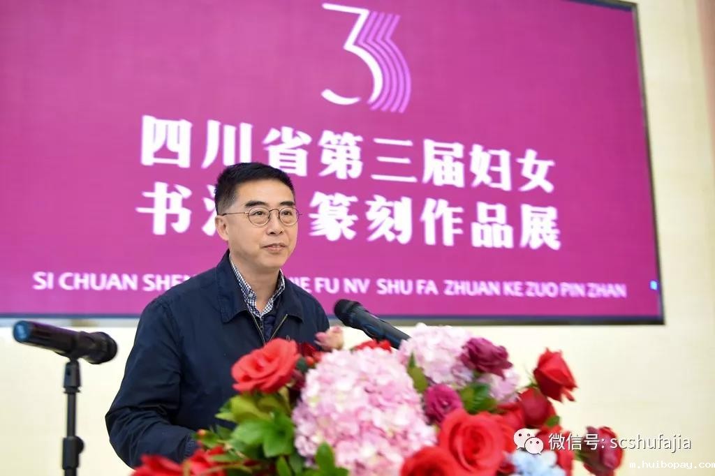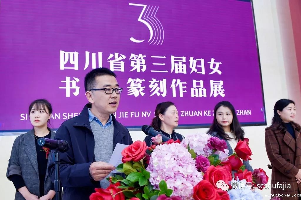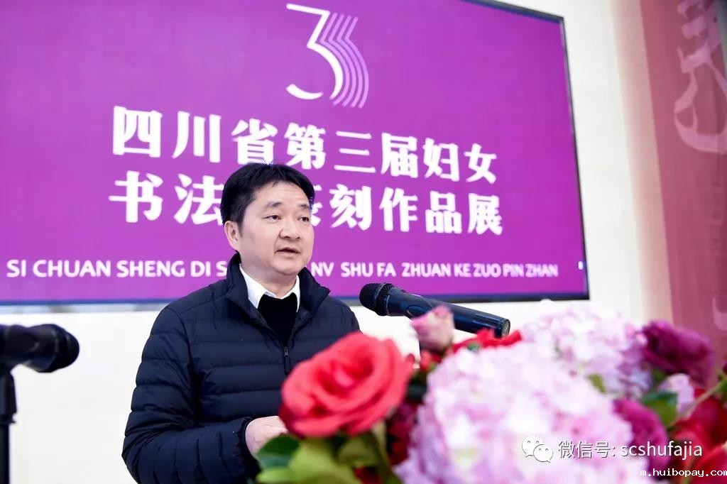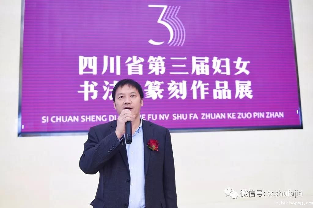 马培松代表绵阳市文联在致辞中表示,在绵阳,学习书法已成为一种高雅时尚,成为一种对传统文化的认同方式和审美需求,书法以它特有的方式为绵阳的文化建设奉献着自己的力量。他说,省书协将第三届妇女书法篆刻展放在绵阳,是对绵阳书法界过往成绩的肯定,也为绵阳书法艺术交流搭建了一个重要平台,更对绵阳书协加快发展提出了更高的要求和期望。他希望全市的书法工作者,要珍惜在家门口学习的极佳机会,不断吸取艺术营养,努力创作出更多、更优秀的艺术佳作。
