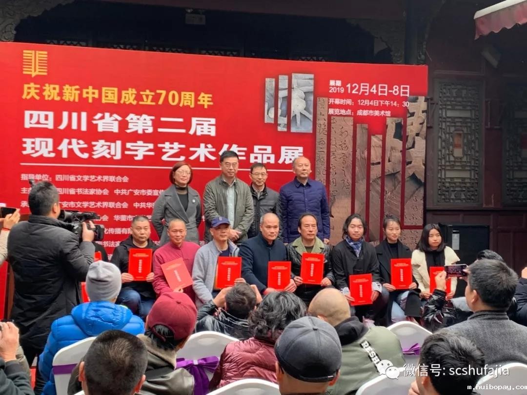 米兰足球彩票官网讯    为庆祝新中国成立70周年,12月4日,由四川省文联指导,四川省书法家协会、中共广安市委宣传部主办,广安市文联、中共华蓥市委宣传部承办的“四川省第二届现代刻字艺术作品展”在成都画院·成都市美术馆举行开幕式。