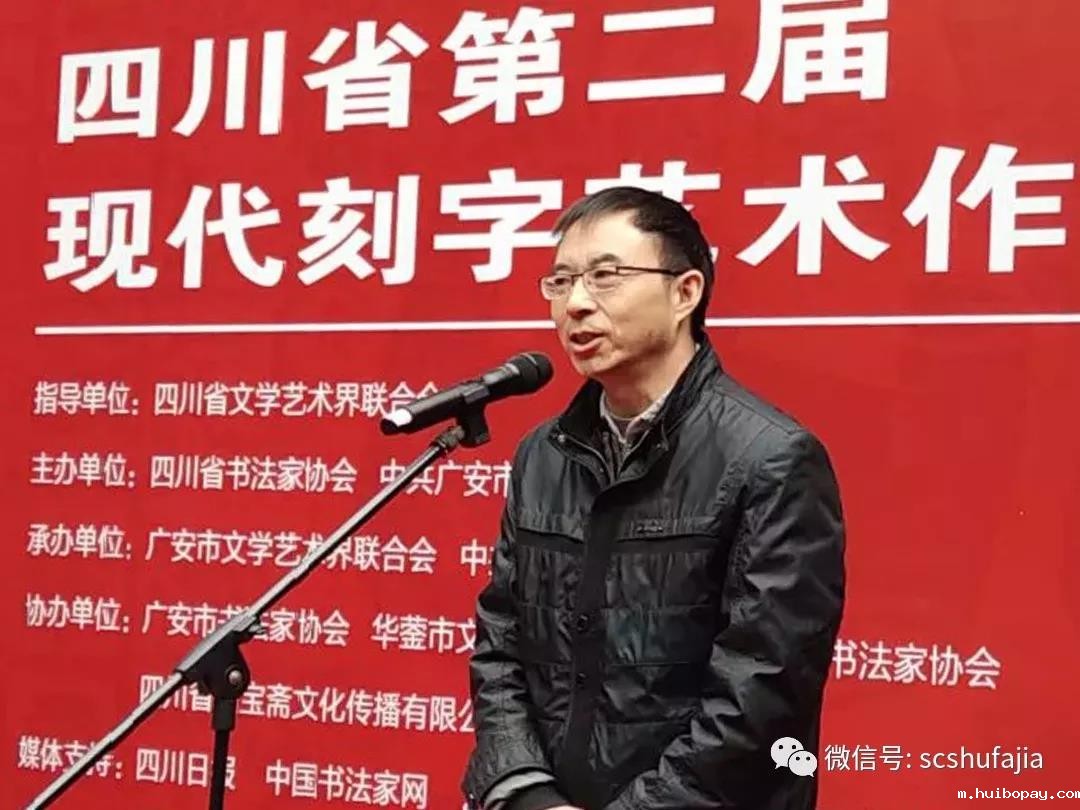 四川省书协主席戴跃代表四川省书法家协会向共同主办该届展览的中共广安市委宣传部,承办本届展览的广安市文联、中共华蓥市委宣传部等单位的倾情付出表示衷心的感谢,并向本次获奖和入展的作者表示祝贺!他说,四川现代刻字艺术从无到有,从小到大。2016年在广安市文联和华蓥市委宣传部的共同支持与推动下,在华蓥市创建了四川省书协现代刻字艺术创作培训基地,省书协刻字委员会勇于担当、主动作为、加强协调,积极努力在刻字基地开展了一系列的创作培训活动,对全川的现代刻字创作起到了十分重要的引领与推动作用。