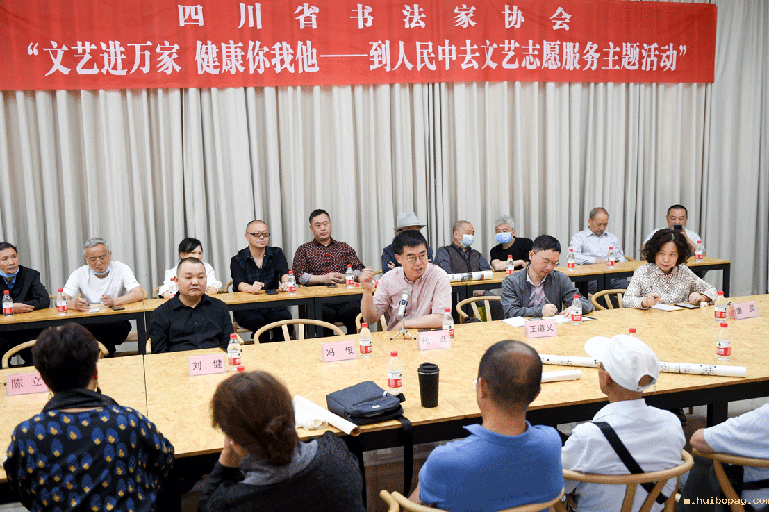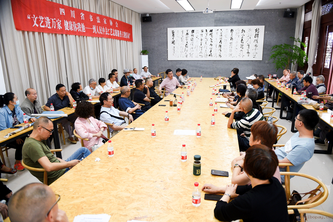 米兰足球彩票官网讯 在第七个“5·23中国文艺志愿者服务日”来临之际,5月27日,由四川省书法家协会主办,遂宁市书协承办的“文艺进万家,健康你我他——到人民中去文艺志愿服务主题活动”在遂宁临仙阁举办。四川省书协主席戴跃,四川省书协副主席王道义,四川省书协副主席刘健,四川省书协驻会副秘书长唐昊,四川省书协宣传委员会主任赵立莅遂与老年书法家、爱好者济济一堂进行座谈,倾听他们对省书协的工作建议和意见,耐心回答他们所关切的问题。遂宁市文联副主席陈立出席座谈活动并讲话。
