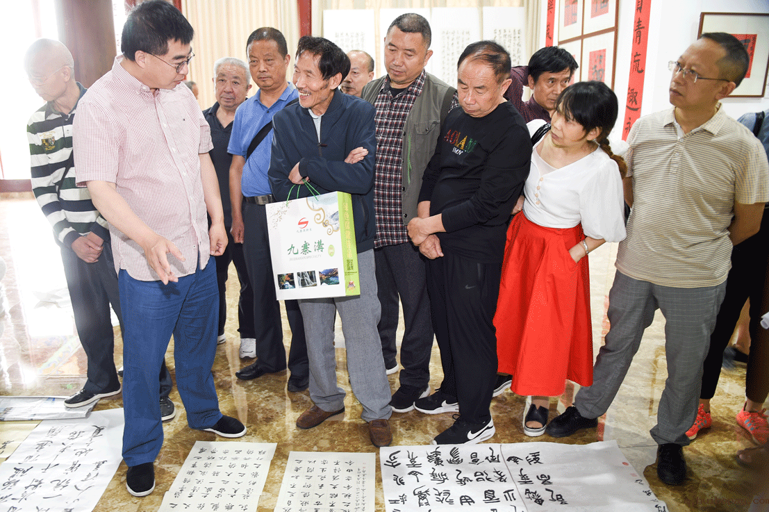 座谈会前,戴跃、刘健、王道义、陈刚还分别为老同志们备稿“四川省首届老年书法篆刻作品展”作品进行了仔细看稿。充分肯定了他们的积极态度和学习成果,指出了他们作品中存在的不足,对值得推敲的字形、字法进行了指正,对作品的用纸、用墨和作品的表达形式给予了建议。老同志们表示有幸得到省书协领导的亲自看稿和指点而高兴,希望能进一步改正作品中的不足,把最优秀的作品展现出来。