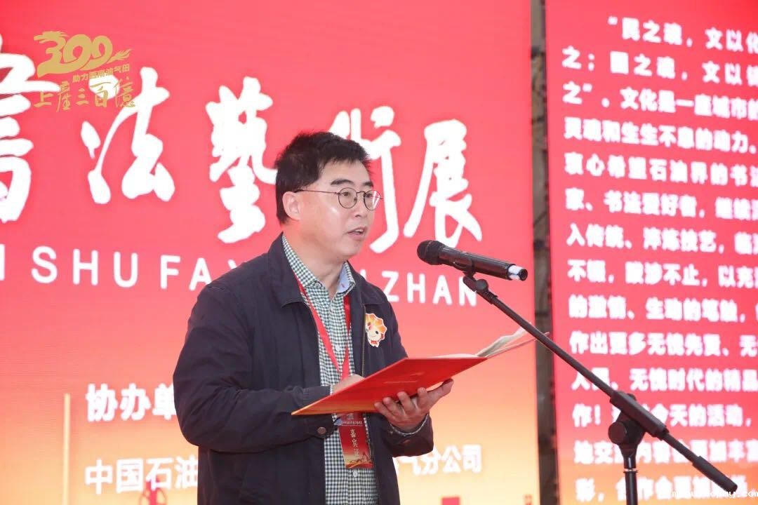 中国石油书法家协会名誉主席樊胜利,西南油气田公司党委委员、纪委书记樊尚珍,中国书法家协会理事、四川省书法家协会主席戴跃,中国石油集团思想政治工作部(党组宣传部)副总师、中国石油文联秘书长沈中,中国书法家协会理事、中国石油书法家协会主席于恩东,西南油气田公司工会常务副主席、公司文联常务副主席、中国石油书法家协会副秘书长马广文等出席开幕式,公司机关相关处(部)室负责人、各基层单位相关领导及书法爱好者共计100余人参加本次活动。