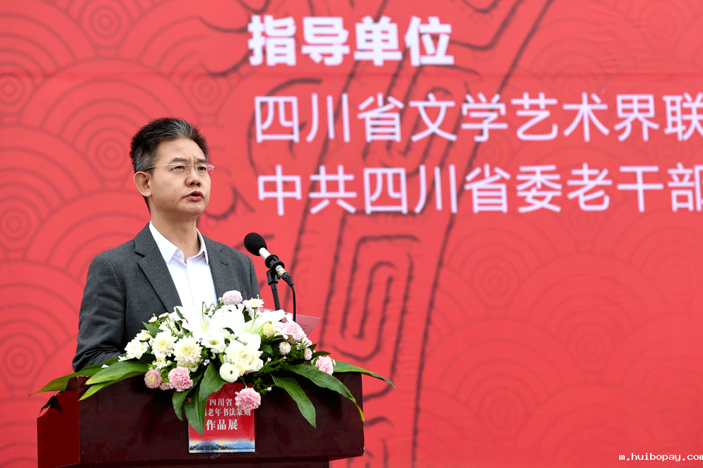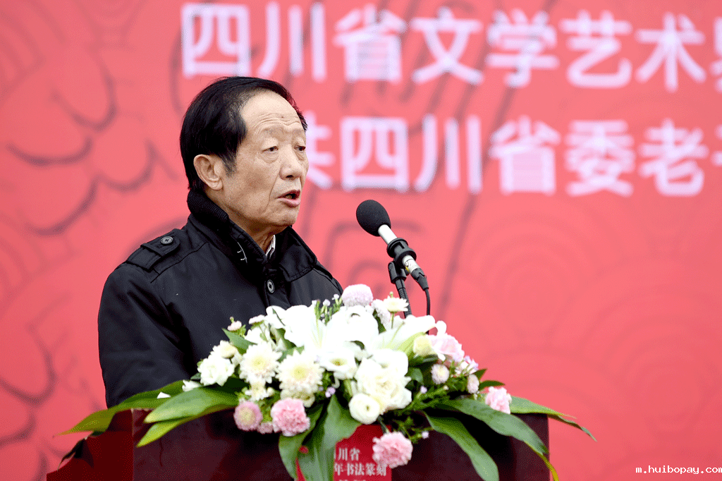 周鸿代表遂宁市委、市人大、市政府、市政协致欢迎辞!他说,四川省首届老年书法篆刻作品展在遂宁的成功举办,不但为全省广大离退休干部和社会各界的老年书法爱好者提供了一个展示艺术才华的良好平台,也为遂宁营造了书法学习的良好的群众基础和浓厚的社会氛围。他祝愿老年朋友们以书言志,以字传情,把我国的优秀传统文化不断发扬光大。