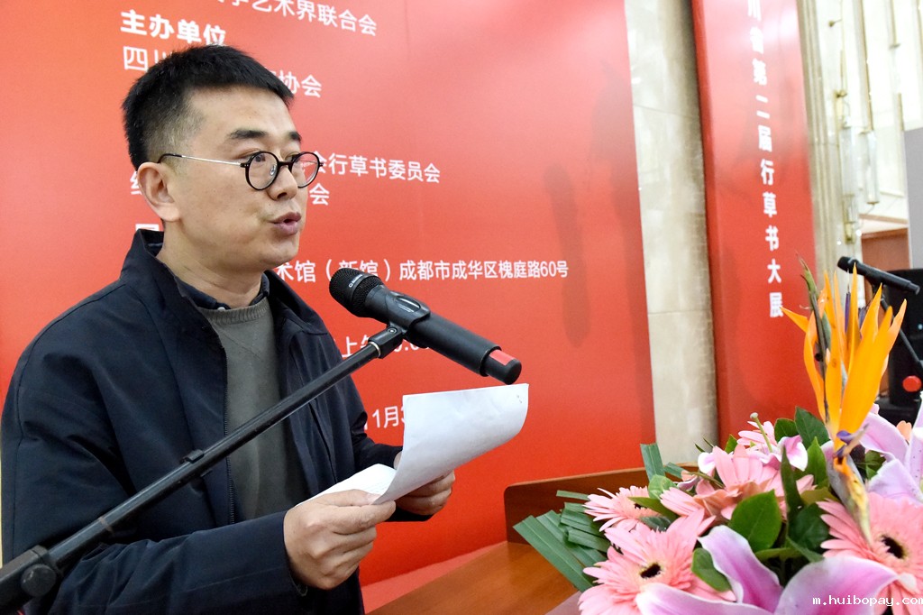 戴跃在开幕式上致辞。他代表四川省书法家协会对关心、关注、支持本届展览成功举办的四川省文联及各位领导,向积极创作投稿的全省广大书法家和爱好者以及绵阳市书法家协会为本届展览在组织工作方面所做出的贡献表示衷心的感谢!