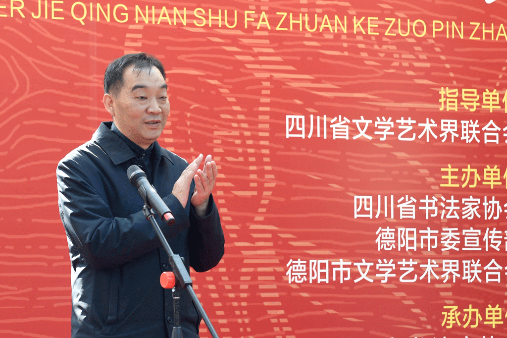 德阳市人大常委会副主任杨庆龙在致欢迎词时说,近年来,德阳深入学习贯彻习近平总书记关于文艺工作重要论述,加快推进文化建设,繁荣创新德阳文艺事业。特别是在书法篆刻艺术方面,坚持创造性转化和创新性发展,广泛开展群众性书法活动,持续举办“德阳文艺”书法大讲堂,大力培育书法艺术青年军,全市专业书法水平和群众书法兴趣得到了大幅度提升,涌现出一批具有一定影响力的中青年书法篆刻艺术家,为德阳高质量发展起到了积极推动作用,作出了应有的贡献。他希望全市广大文艺工作者,特别是青年书法篆刻家、书法篆刻爱好者一定能以本次展览的举办为契机,加强交流学习,砥砺淬炼技艺,创作出更多无愧于时代、无愧于人民的文艺精品,为讲好德阳故事、扩大德阳影响、塑造德阳美好形象作出更大贡献。