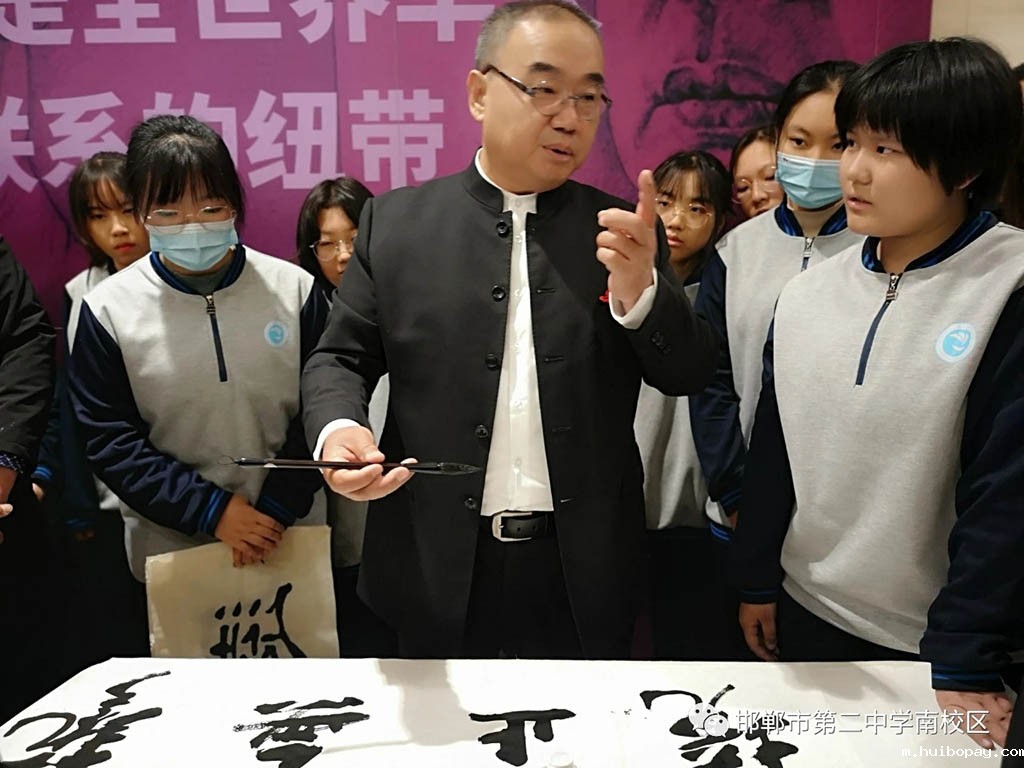 同日下午,封俊虎、李学伟先生参观封俊虎书法公益研究教学基地,为师生挥毫示范、举办了书画讲座。李学伟先生受聘为基地顾问。
