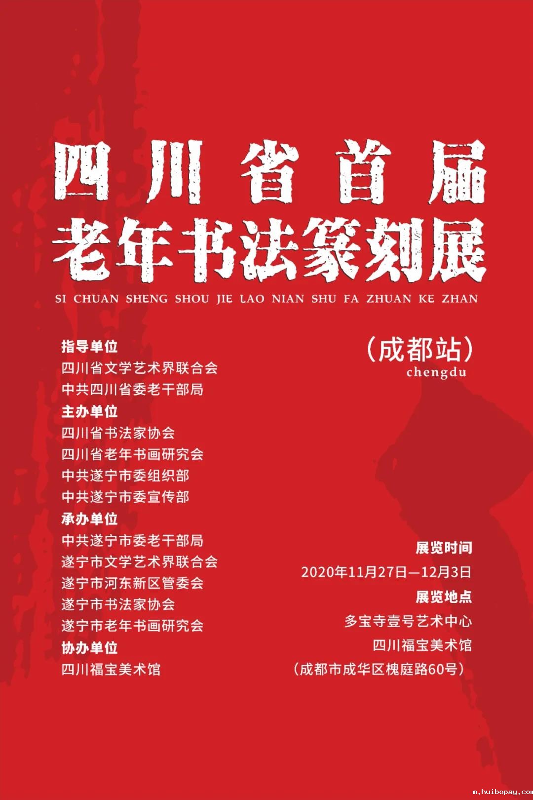 展讯: 由四川省文学艺术界联合会、中共四川省委老干部局的共同指导下,由四川省书法家协会、四川省老年书画研究会、中共遂宁市委组织部、中共遂宁市委宣传部共同主办的“四川省首届老年书法篆刻作品展”将于11月27日移师四川福宝美术馆展出,欢迎大家届时前往观展。