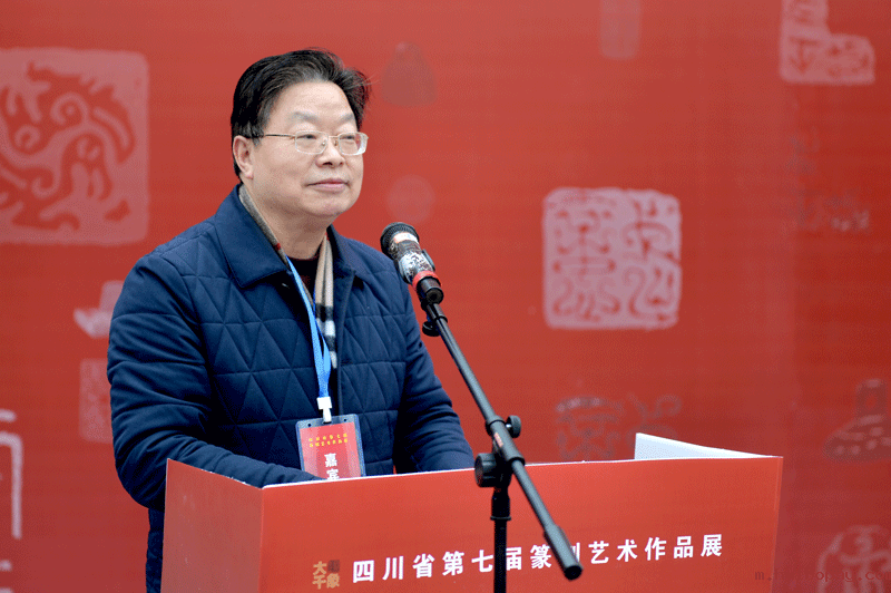 戴跃指出,蜀山秀水生灵气,金石开新竞芳菲。为深入学习贯彻习近平新时代中国特色社会主义思想和党的十九大精神,大力弘扬中华优秀传统文化,讲好四川故事,四川省书法家协会举办了此次篆刻作品展,旨在全面提升和展示四川当代篆刻艺术的整体水平和艺术成就,检阅四川篆刻创作队伍,引领四川篆刻创作发展方向,激发四川篆刻作者的学习和创作热情,进一步推动四川书法篆刻事业的繁荣发展,积极营造对当代篆刻发展趋势、风格流派、创作思潮、技法探索等领域的学术研究氛围。