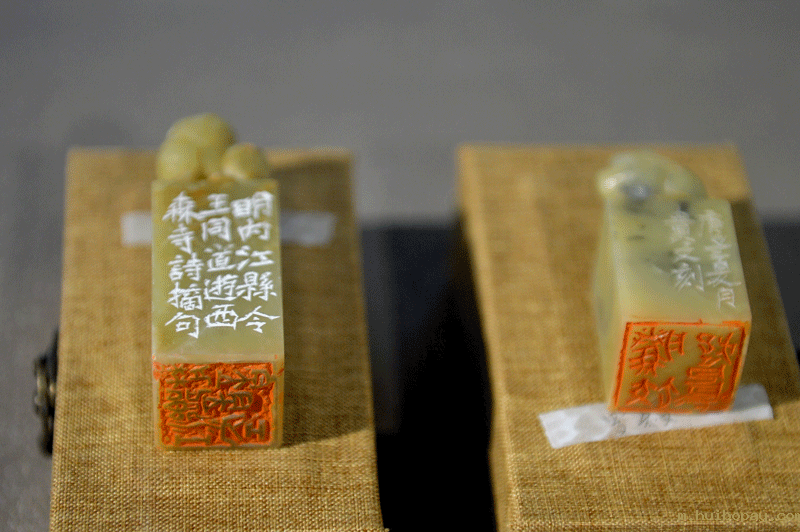 据悉,内江市收藏的齐白石1936年做客四川时为竞寰将军所刊《崔子玉座右铭》篆刻原石12枚也在开幕式当天上午展出。这批印章为寿山、青田等石质,其中4枚为朱文,8枚为阴文。