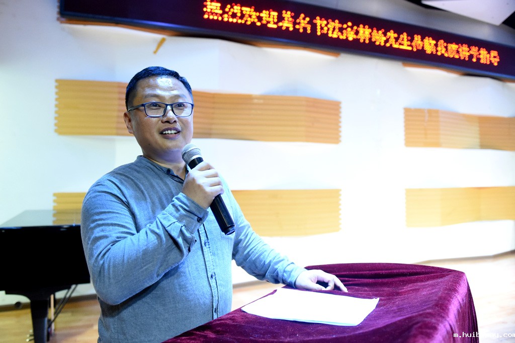 西南民族大学艺术学院副院长符辉在致辞中对本次演讲嘉宾林峤和各兄弟院校老师和同学们的到来表示热烈的欢迎,符院长对当前学院书法学科的建设给予积极的肯定和赞赏并期望学院书法教育能够发展得越来越好。