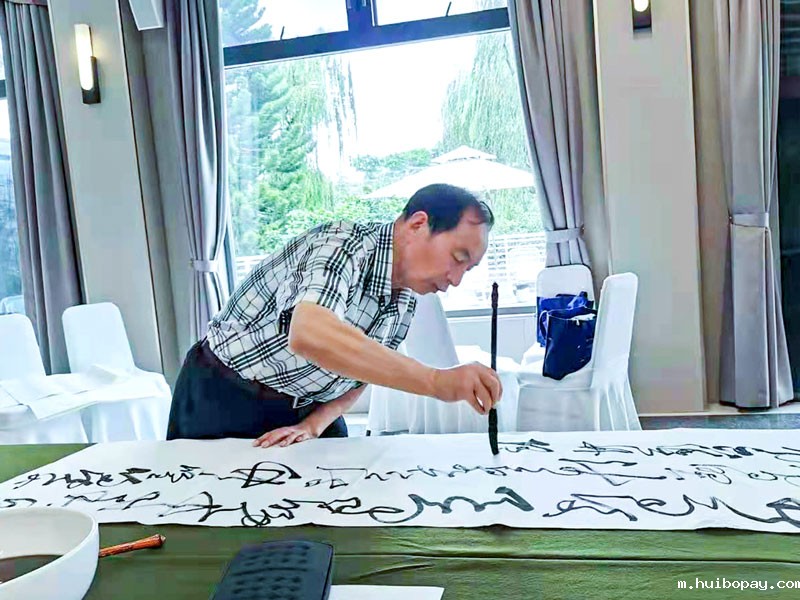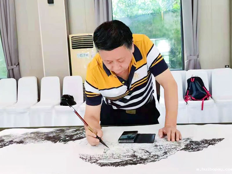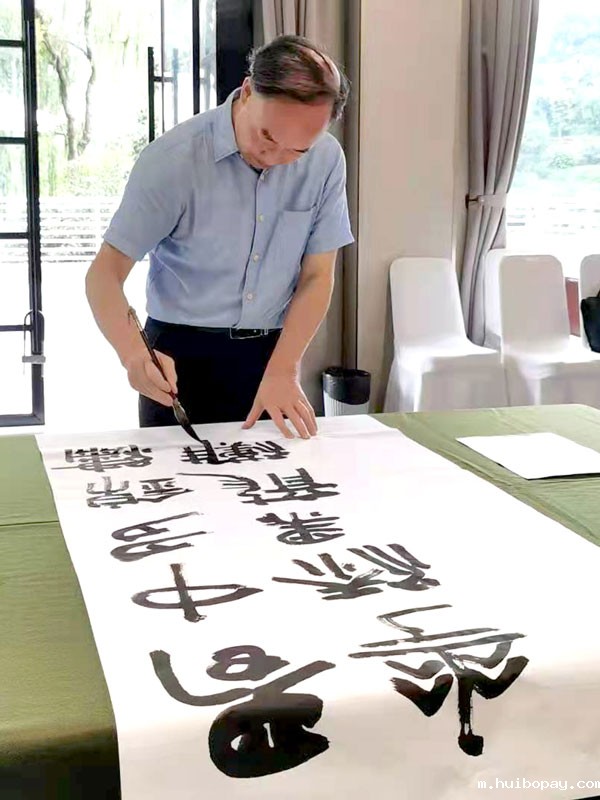 一天中,书画家们忘情于黑龙滩水库的碧水青山之间,中午也不休息,共创作了20多幅书画作品。其中有姚叶红气势恢宏的国画《拜水都江堰,激情黑龙滩》,龚光万表现黑龙滩温婉一面的国画《水上盆景》,徐德松笔势雄健的书法《观海听风》;也有陈荣仲鸾翔凤翥的草书《上善若水》以及戴朝先行云流水的书法《百事顺风腾瑞气,万里鹏程伴吉祥》等作品。