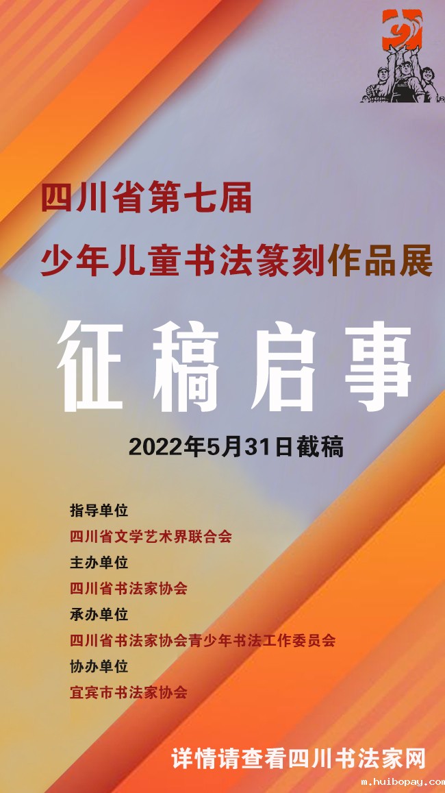 少年强则国强。当代中国少年儿童是实现第一个百年奋斗目标的经历者、见证者,是实现第二个百年奋斗目标、建设社会主义现代化强国的生力军,也是中华优秀传统文化的传承人。为落实习近平总书记关于少年儿童成长重要讲话精神和国家两办下发的《关于全面加强和改进新时代学校美育工作意见的通知》有关精神,进一步弘扬中华优秀传统文化,以美树人,以美育人,全面展示当代四川少年儿童书法篆刻的艺术素养,进一步促进和繁荣四川省少年儿童书法篆刻艺术创作与教育教学水平,经研究决定举办“四川省第七届少年儿童书法篆刻作品展”。现将征稿有关事项公布如下: