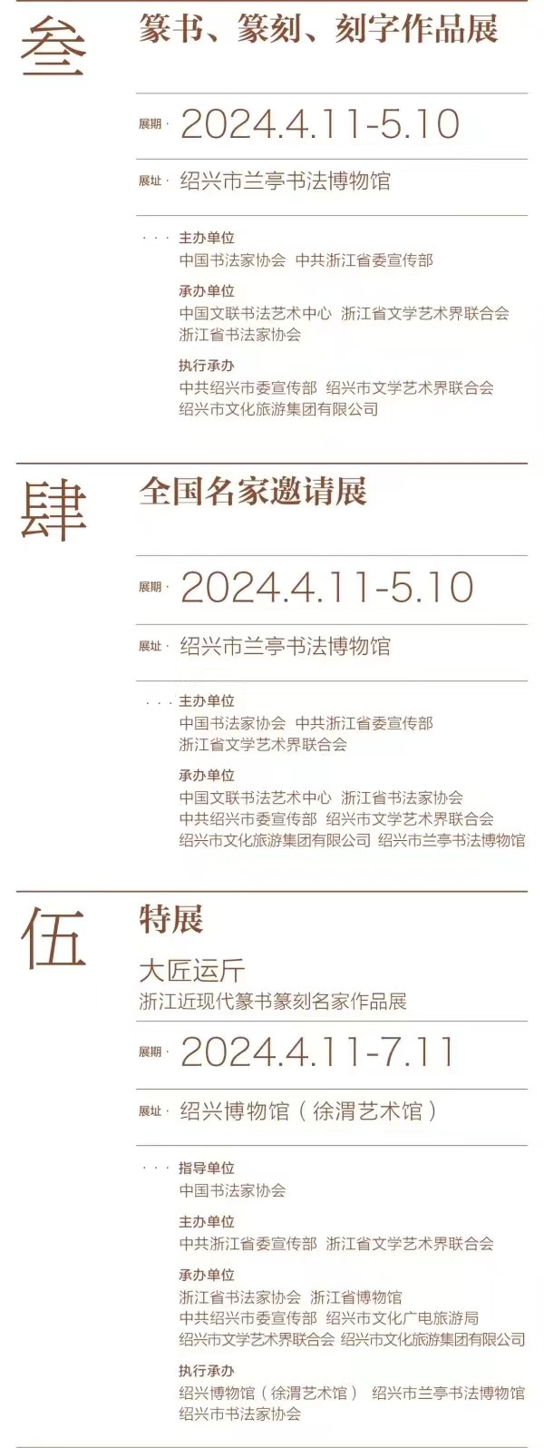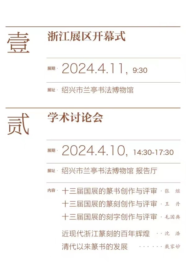 预告 | 全国第十三届书法篆刻展览浙江展区(篆书、篆刻、刻字作品展)将于4月11日在绍兴开幕