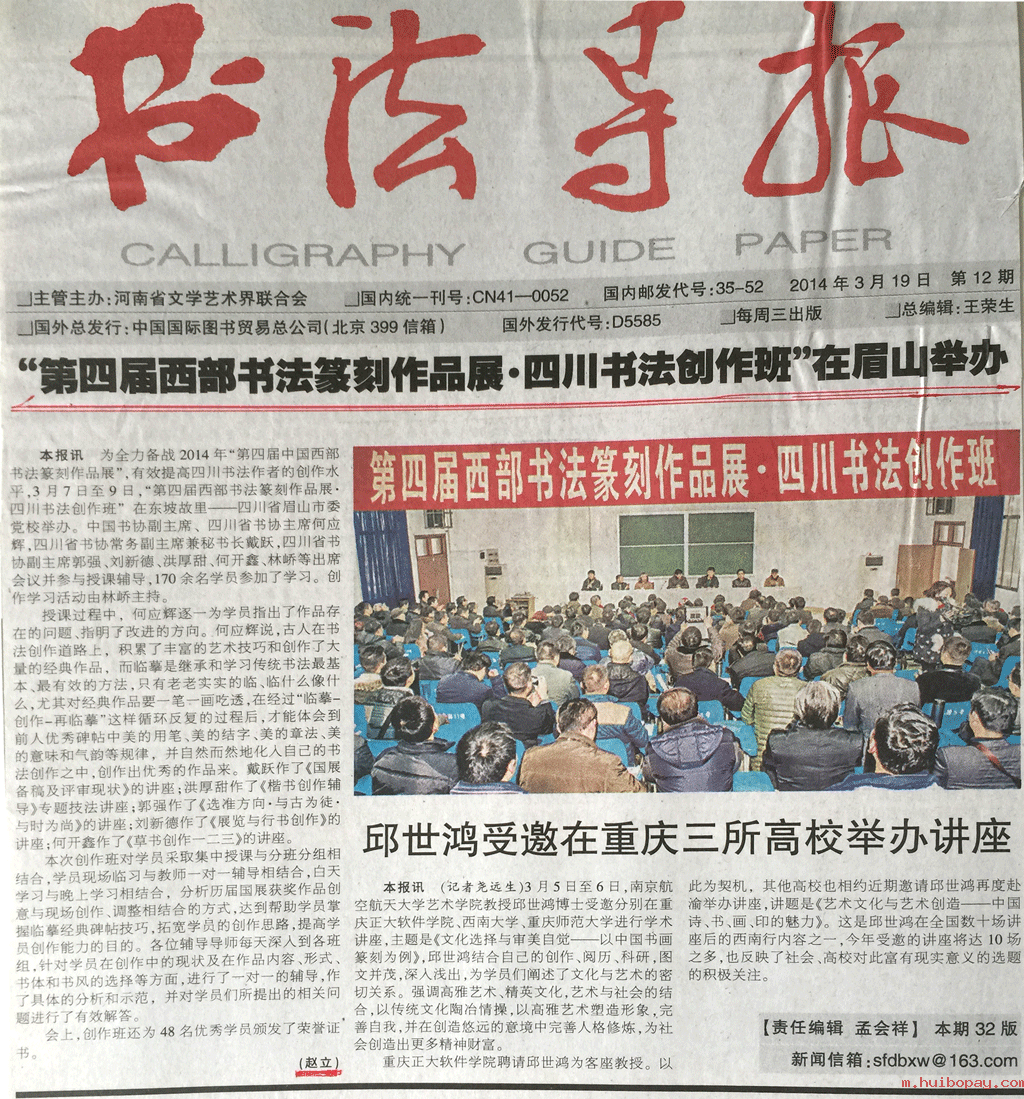 书法导报:“第四届西部书法篆刻作品展四川书法创作班”在眉山举办