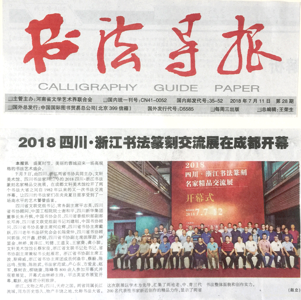 书法导报:2018四川浙江书法篆刻交流展在成都开幕