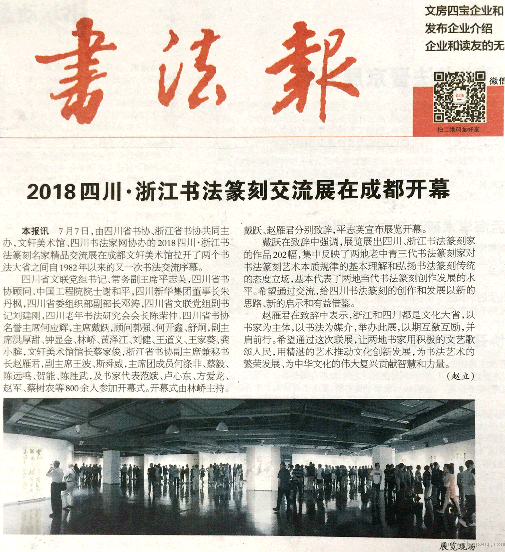 书法报:2018四川浙江书法篆刻交流展在成都开幕