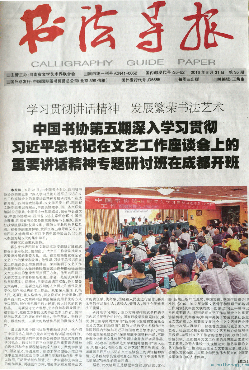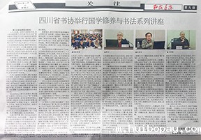 《书法导报》刊登“国学修养与书法•四川省书法家协会首期青年创作骨干研习班”消息
