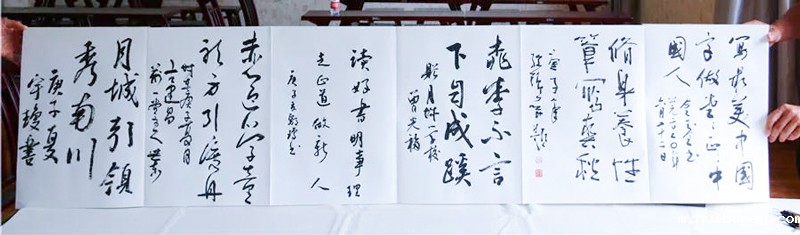 作为州、市书法家协会联合启动的“首家书法教育实验学校”,州、市书协领导高度重视,并寄予厚望,州书协金玉全主席欣然为月城学校题词:“写最美中国字,做堂堂正正的中国人”;市书协曾光福主席题词:“桃李不言,下自成蹊”;其他州、市书协领导也纷纷题词,州书协副主席孙锦屏题词:“修身养性,笔写春秋”;州书协副主席鄢琼题词:“读好书明事理,走正道做新人”;市书协副主席陈世东题词:“赤心迎学童,躬身引渡舟”……作为月城学校的老教师龚宇琼老师目睹老校新貌,也激动挥毫:“月城引领秀南川”。