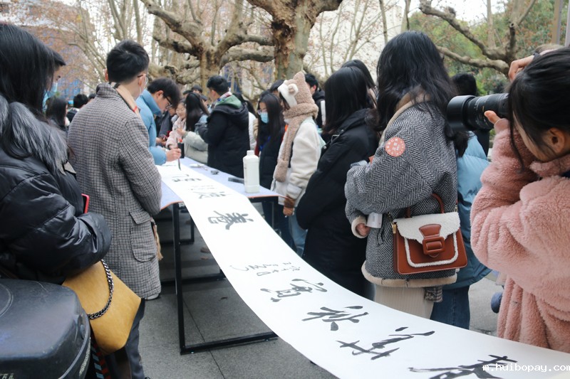 在寄语环节结束后,本次开幕式还特设了“以笔会友”环节,由在场的老师和同学共同书写了20余米的书法长卷。大家现场创作挥洒笔墨,吸引了行人的驻足观赏与赞叹,好一幅“翰墨川农”的新气象!开幕式结束后,在协会艺术指导顾问杨林舒同学及协会其他负责同学的陪同下,与会的领导、书画艺术家们参观了展览。