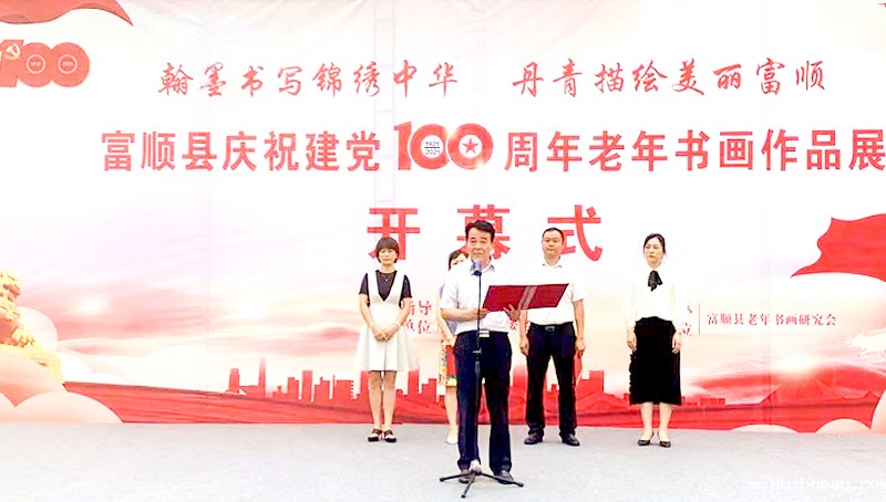 据富顺县老年书画研究会会长谭逢平介绍,,于4月29日在全市率先成立,现有会员58人。为建党100周年献上一份厚礼。富顺县老年书画研究会精心策划,周密安排,从5月9日发出征稿通知,到5月31日仅20天时间,便收到会员作品近80幅,经过评审选出60幅作品展览,其中书法作品 46幅,绘画作品 14 幅,作品十分丰富。紧扣庆祝中国共产党成立100周年主题,重点突出歌颂党,歌颂祖国百年辉煌伟业;再现富顺日益发展变化的新面貌,新成果;彰显千年古县、才子之乡的文化底蕴,充分展示老年书画研究会会员的艺术才华。
