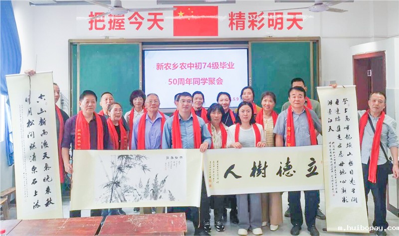 5月9日,富顺县飞龙镇发农小学校1974届校友谭逢平一行回到母校开展毕业50周年同学聚会,并为发农小学校捐赠书画集。富顺县新农九年制学校党支部书记、校长母维洪,副书记王丹丹,工会主席刘波等参加座谈会。