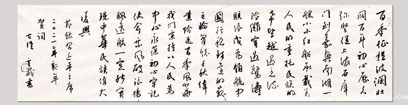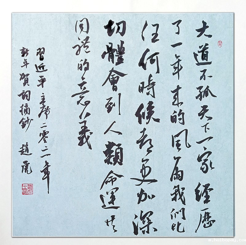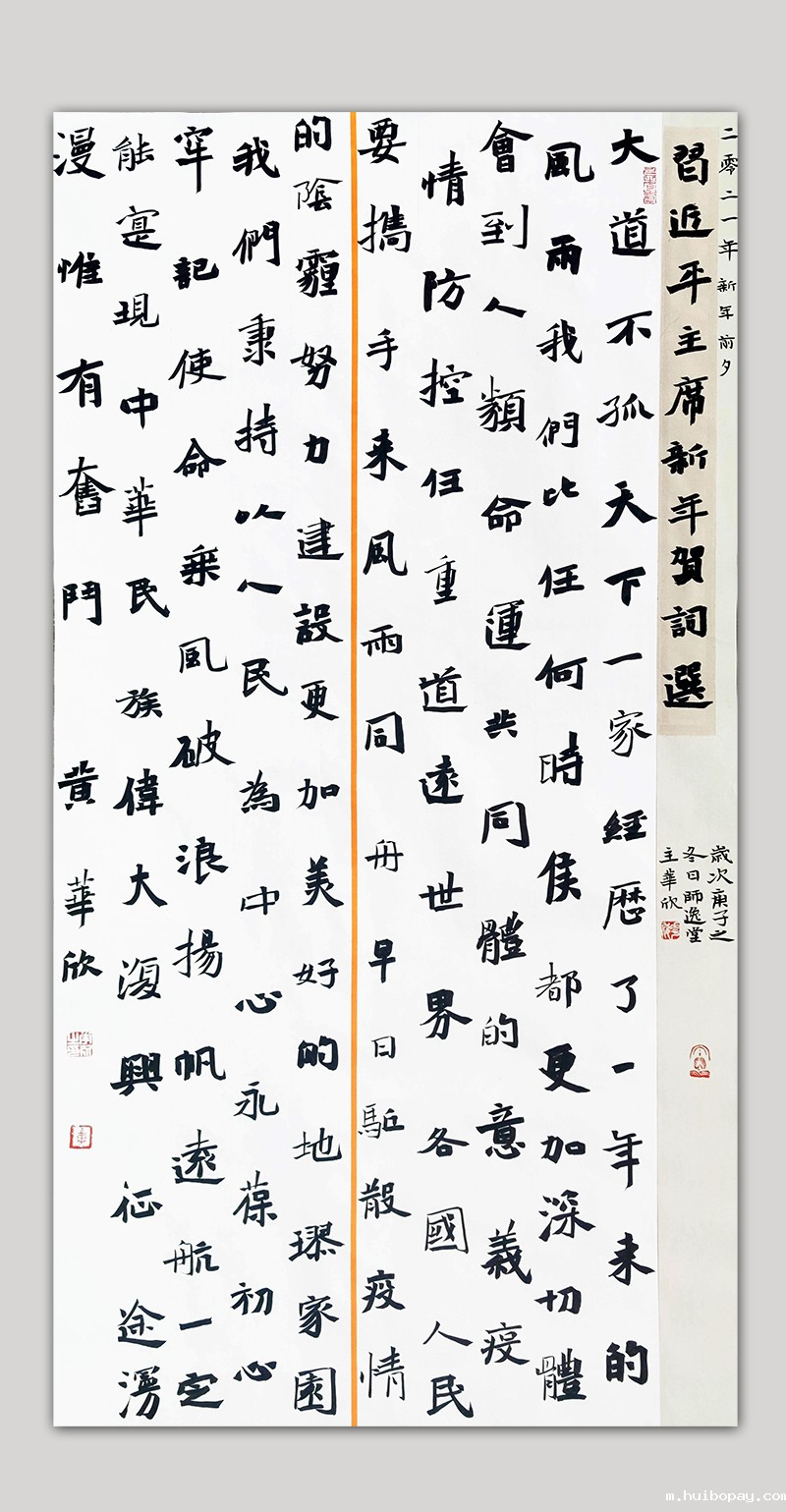 2、书法云联欢 牛年七天乐①| 致敬与奋进中国同行的你我 ——习近平主席二〇二一年新年贺词书法作品网络展