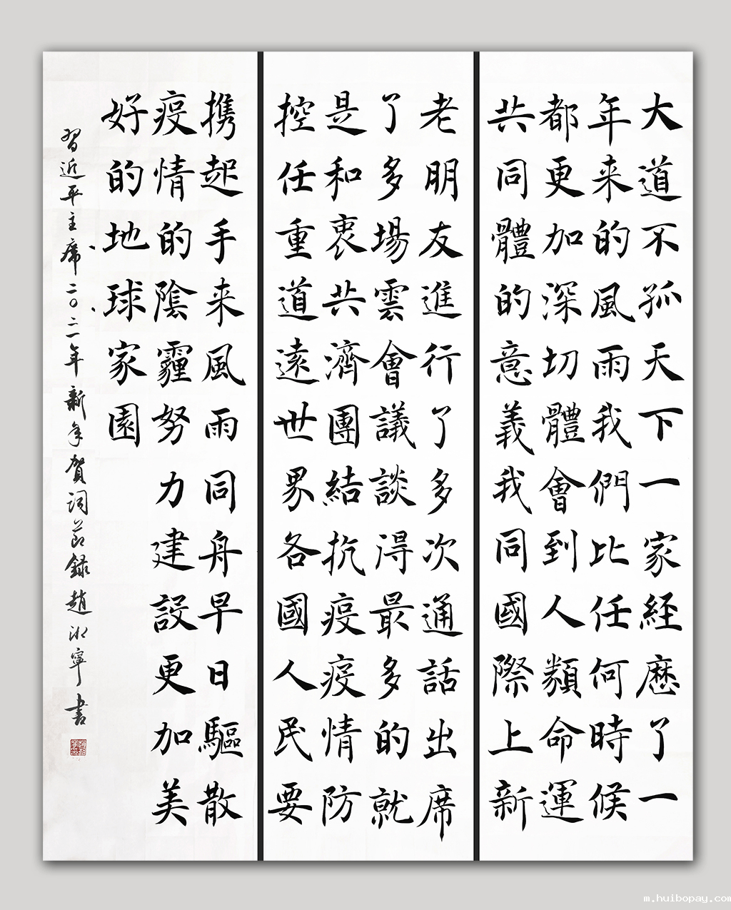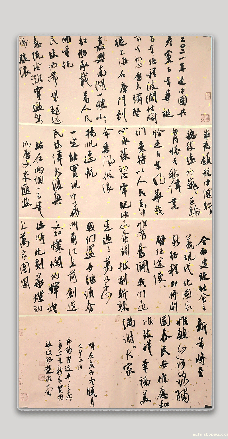 2、书法云联欢 牛年七天乐①| 致敬与奋进中国同行的你我 ——习近平主席二〇二一年新年贺词书法作品网络展
