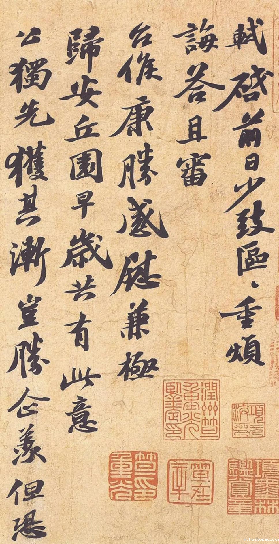 历史上名留千古的书家,无不才高学富、学养深厚,自然天成的笔墨功夫信手拈来,看似漫不经心,实际上没有深厚笃实的文字、文学、文化功底和超越常人的人生阅历是难以做到的。如果把文学与艺术两方面的成就综合起来评价的话,苏轼堪称千古第一人,整个中国文化史上能与其并驾齐驱的屈指可数。苏轼的书法创作与其文人身份密不可分:散文方面,苏轼是“唐宋八大家”之一;诗方面,苏轼在整个宋代与陆游齐名;词方面,苏轼与辛弃疾并称“苏辛”,是宋词最高成就的代表;书法方面,苏轼与黄庭坚、米芾、蔡襄并称“宋四家”;绘画方面,苏轼是文人画的开创者。古往今来,几曾有过以一人之身在这么多的文化艺术领域登峰造极的巨匠?苏轼的《黄州寒食诗帖》被奉为学书经典,通篇宛如天籁之音,融入灵魂血肉,笔已尽而意无穷。苏轼一生跌宕起伏,贬谪黄州,令他进一步走向民众,作品具有着时代的人文气息。他把个人命运与家国情怀联系在一起,洞彻古今,万取一收,写出了人间至情和人生真谛,人品与作品都展现出持久的艺术魅力。