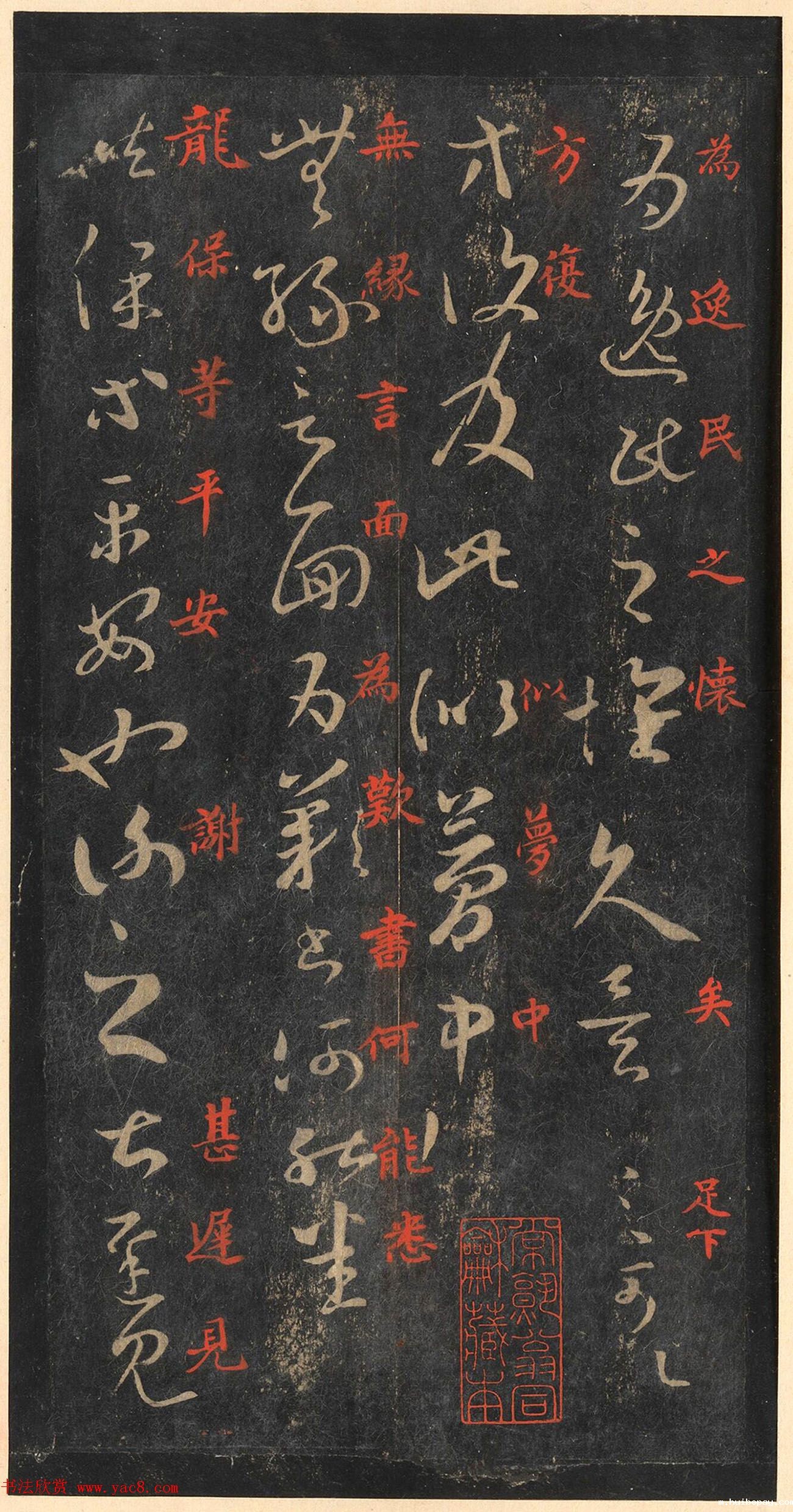 属于“馆本”系统中的“缺十七行本”,为罕见精品拓本。本拓本摹刻传神,字画清晰,墨色均匀,每幅作品章法完美,同时含有朱文释文,诚为“宋拓十七帖”诸版本中的佼佼者。