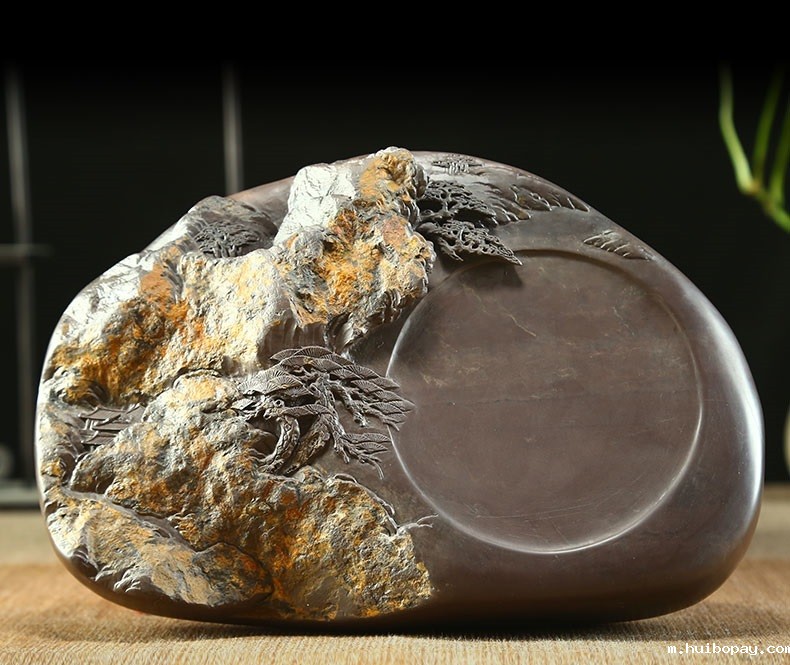 九曰砚山。依石天然形状凿为砚,刻石为山,叫做砚山。明高谦《遵遵生八戕》谓:"砚山始自米南宫,以南唐宝石为之,图载《辍耕录》,后即效之。"如天津市艺术博物馆藏有清人阮元旧藏仿元人清溪钓艇小景端石砚山即是。